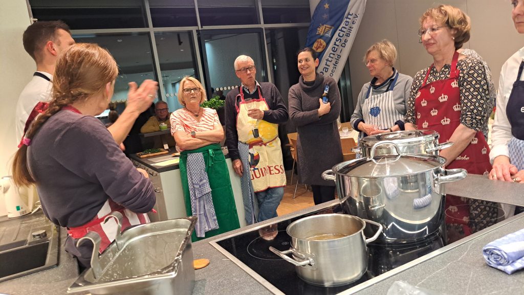 Die Gäste schnitten, rührten und würzten begeistert mit – unterstützt von den Profis, die immer wieder kleine Tipps aus der gehobenen Küche einfließen ließen. Neben dem kulinarischen Genuss stand auch das gemeinsame Erlebnis im Mittelpunkt: „Es ist schön zu sehen, wie Essen Menschen verbindet“, war ein Eindruck der Veranstaltung. Zum Abschluss wurde gemeinsam gegessen, gelacht und gefachsimpelt. Viele Teilnehmerinnen und Teilnehmer nahmen nicht nur neue Rezepte, sondern auch ein Stück niederländisches Lebensgefühl mit nach Hause.