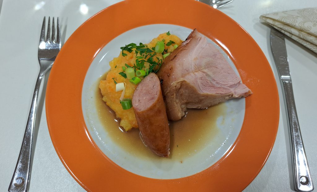 Als Hauptgang stand ein klassischer Stamppotauf dem Programm – ein deftiges Kartoffelgericht, das mit Mettwurst und Schinken zubereitet wurde und besonders in der kalten Jahreszeit in den Niederlanden beliebt ist.